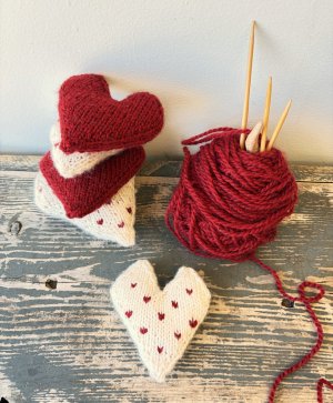 These soft, stuffed hearts can be knitted in two sizes, with colorwork or solid.